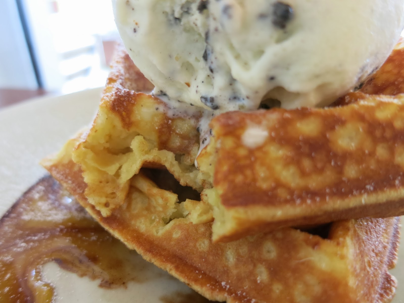 Anyway the waffles are crispy on the outside and soft and fluffy inside, and it tastes so well with the ice cream! I know ice cream and waffles are like the norm, but this version compliments each other very nicely! However it can get a little bit gelat towards the end, so remember to save some ice cream so that you can eat it together with the waffles throughout. That'll balance out the buttery-ness of the waffle. (: